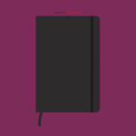 Smart medium size notebook with 80 leaves (160 pages) of lined paper and a hard cover with a soft touch Neoskin finish. It has an elastic closure band and a book mark ribbon.
