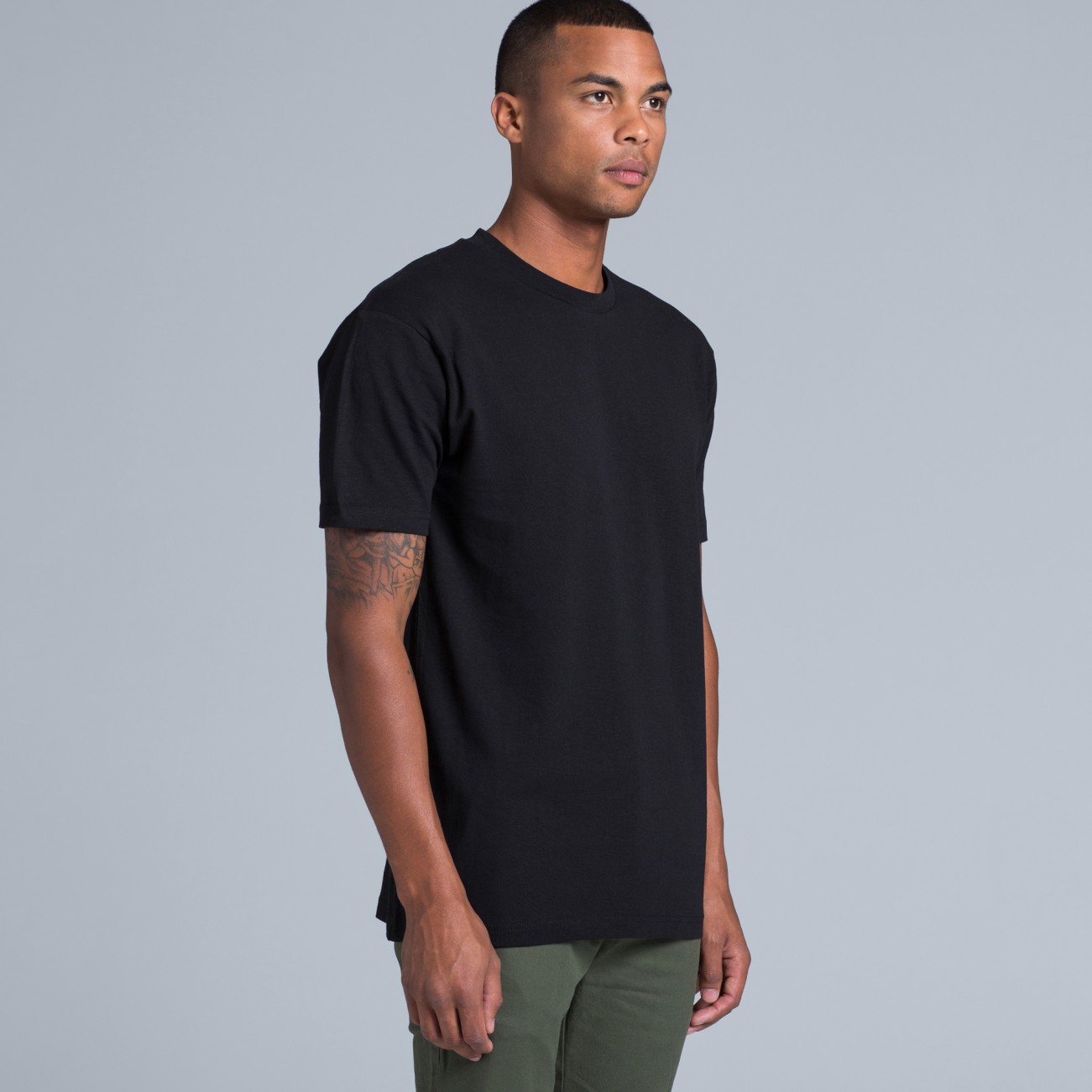 Slightly narrow at upper chest, curved hem, double needle bottom hem, preshrunk to minimise shrinkage